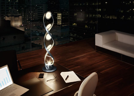 Светодизайнер Martin Möck (Osram) разработал гибридный светильник “PirOLED” (фото внизу), в котором вместе с OLED-модулями “Orbeos” используются неорганические светодиоды (LED). Они размещены в основании светильника и излучают «снизу вверх» - на тыльные, зеркально отражающие поверхности модулей.